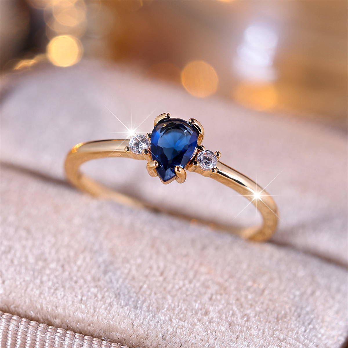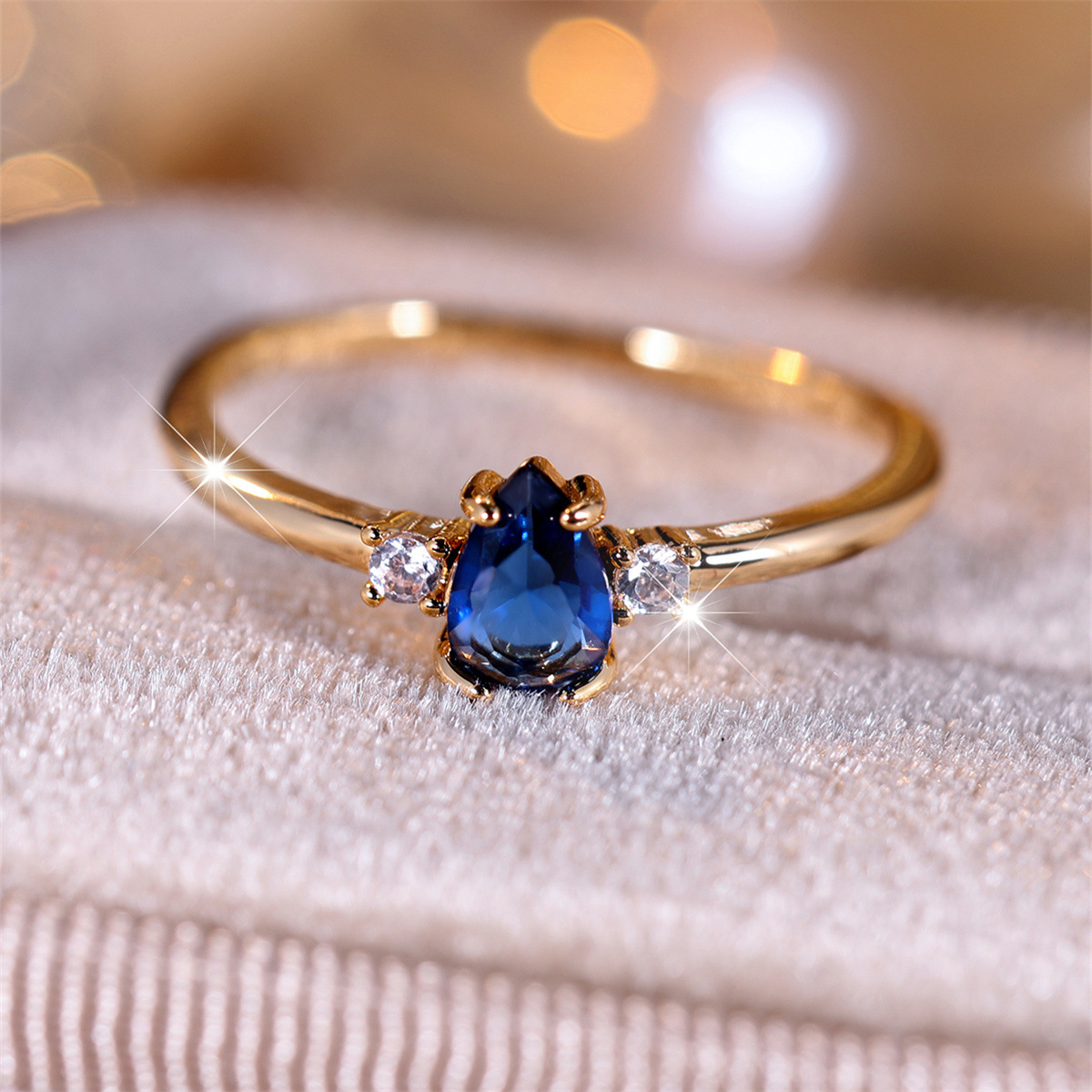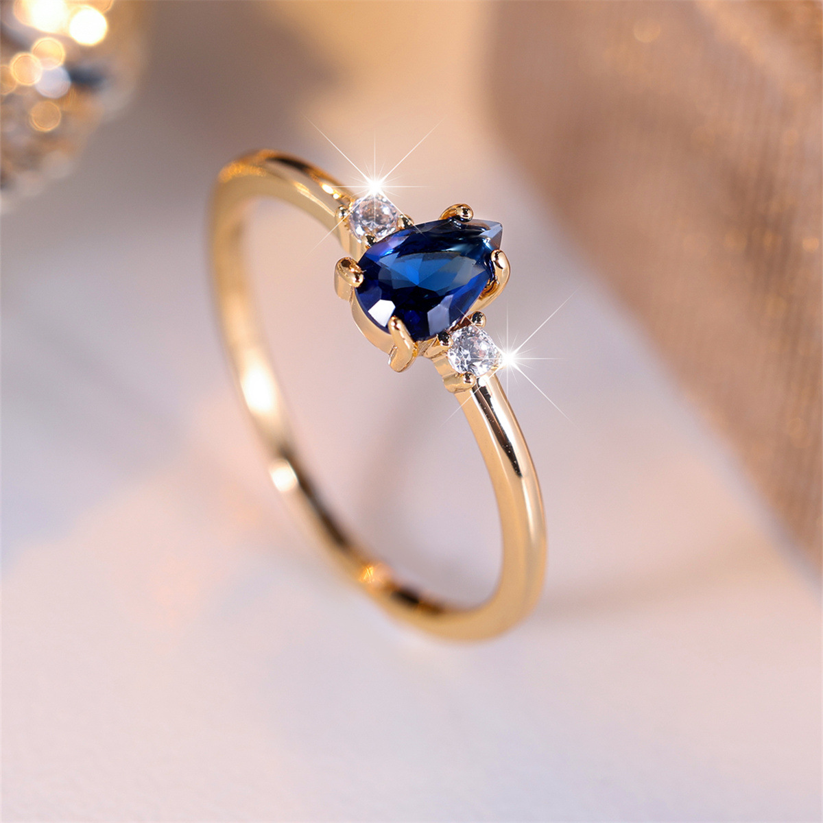 Minimalist Drop-Shaped Blue Gem Ring